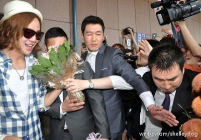 Jang Keun Suk koreai csillag hatalmas npszersgnek rvend zsiban a sorozata miatt [You're Beautiful]. Ma dlben rkezett Tajvan dli replterre, ahol tbb mint 300 rajong gylt ssze, hogy dvzljk t, mikzben siktsukkal tltik be a levegt s mg azzal is, hogy rendrsgi biztonsgra is szksg volt. A legklnlegesebb az, hogy volt krlbell 20 rajong, akik eskvi ruhban ltztettek s azt kiablta, hogy ssze akarnak hzasodni JKS-al. :3